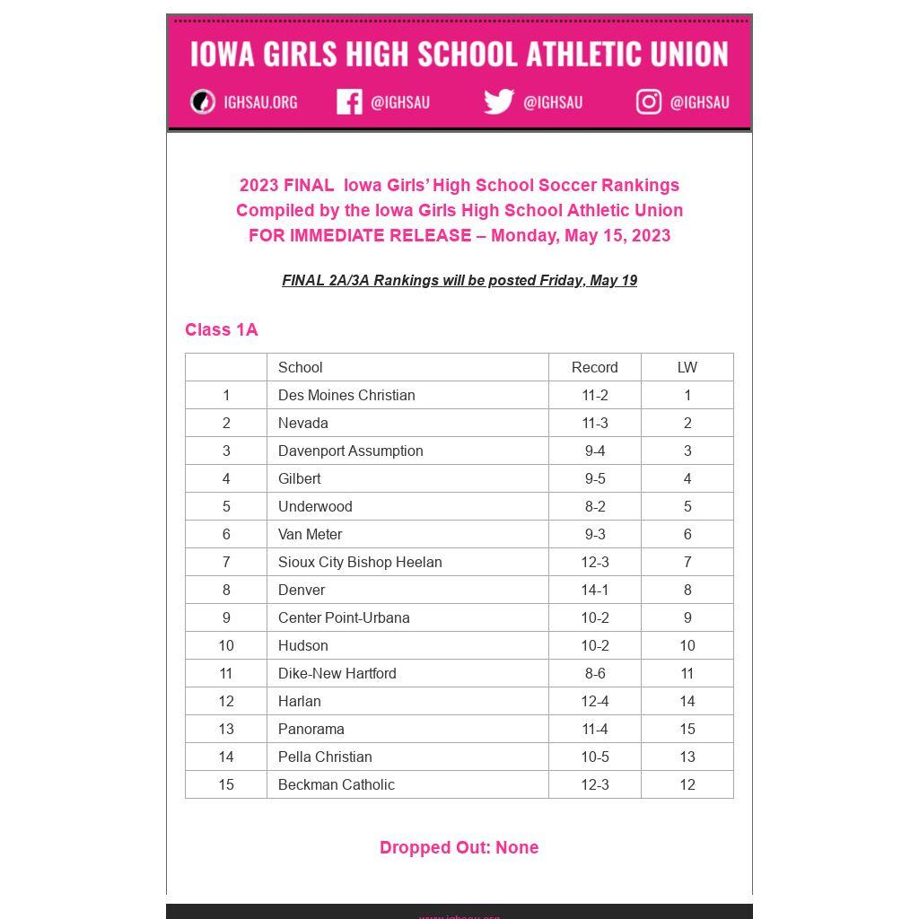 2023 FINAL Iowa Girls’ High School Soccer Rankings