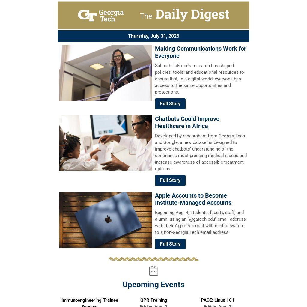 Beginning Aug. 4, students, faculty, staff, and alumni using an “@gatech.edu” email address with their Apple Account will need to switch to a non-Georgia Tech email address.