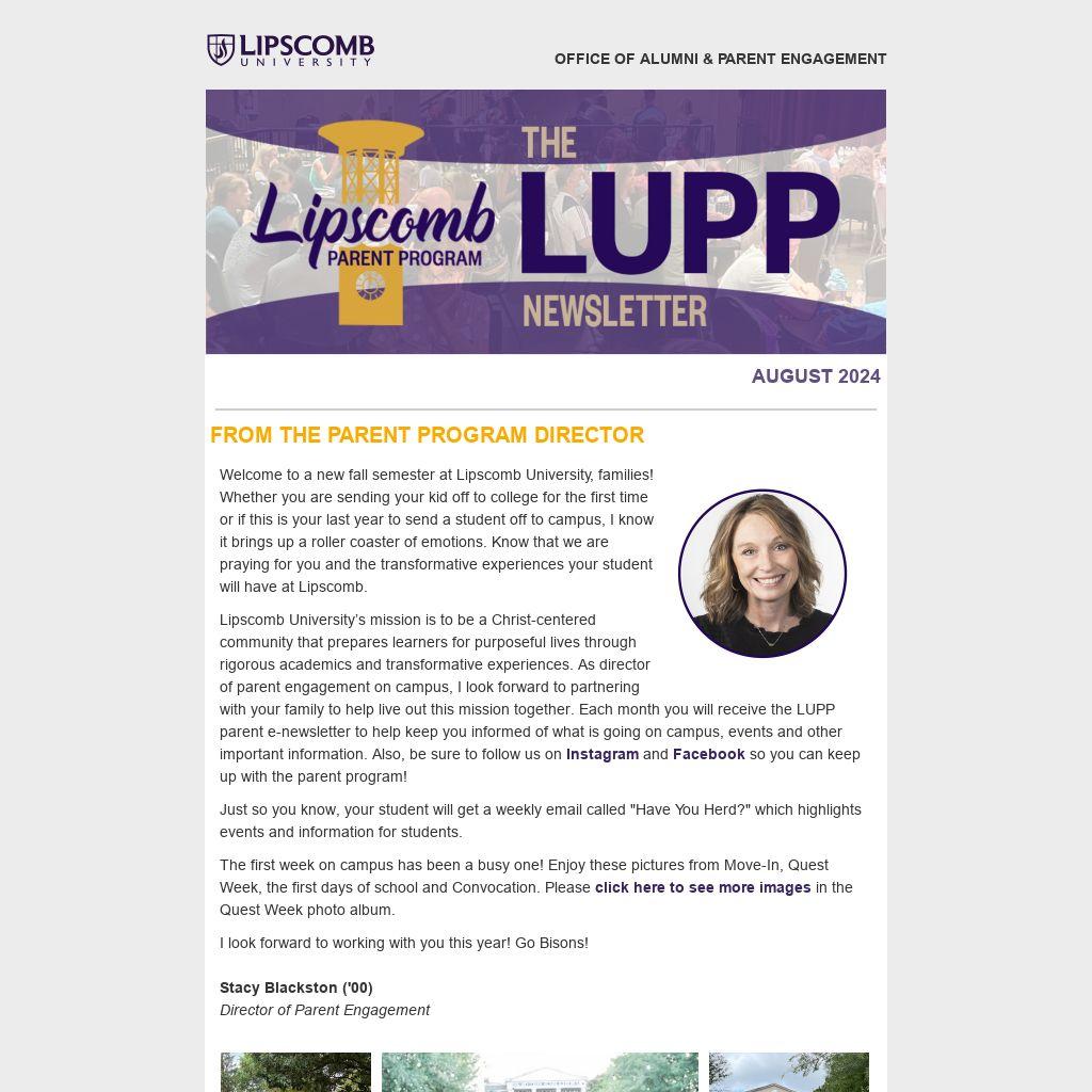This month we are highlighting Bison Square Fair. On Saturday afternoon, Bison Square will be filled with activity that includes a campus-wide lunch, entertainment, reunions, games and more. You'll find tents filled with groups for everyone—from social clubs, student organizations, student government, the Parent Program, colleges and departments to teams, the IDEAL Program and Veterans Services. It’s the perfect opportunity to meet and greet university representatives from Lipscomb University who have the honor of teaching, interacting and connecting with your student on campus.