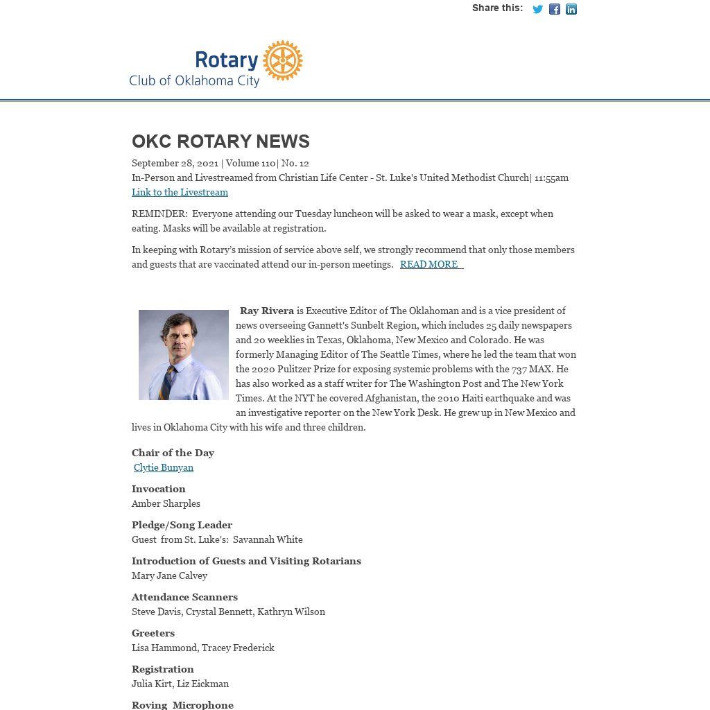 OKC Rotary NewsSeptember 28, 2021 | Volume 110| No. 12