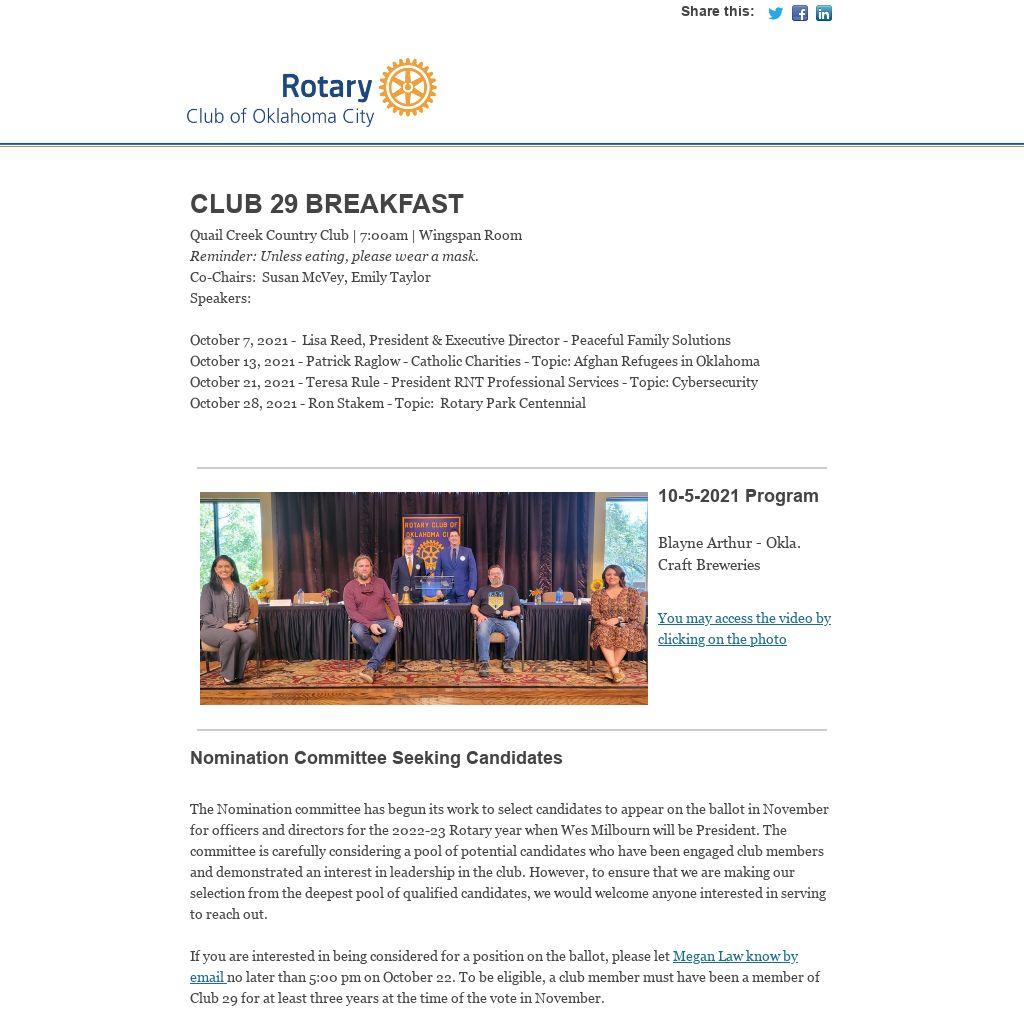 October 28, 2021 - Ron Stakem - Topic: Rotary Park Centennial