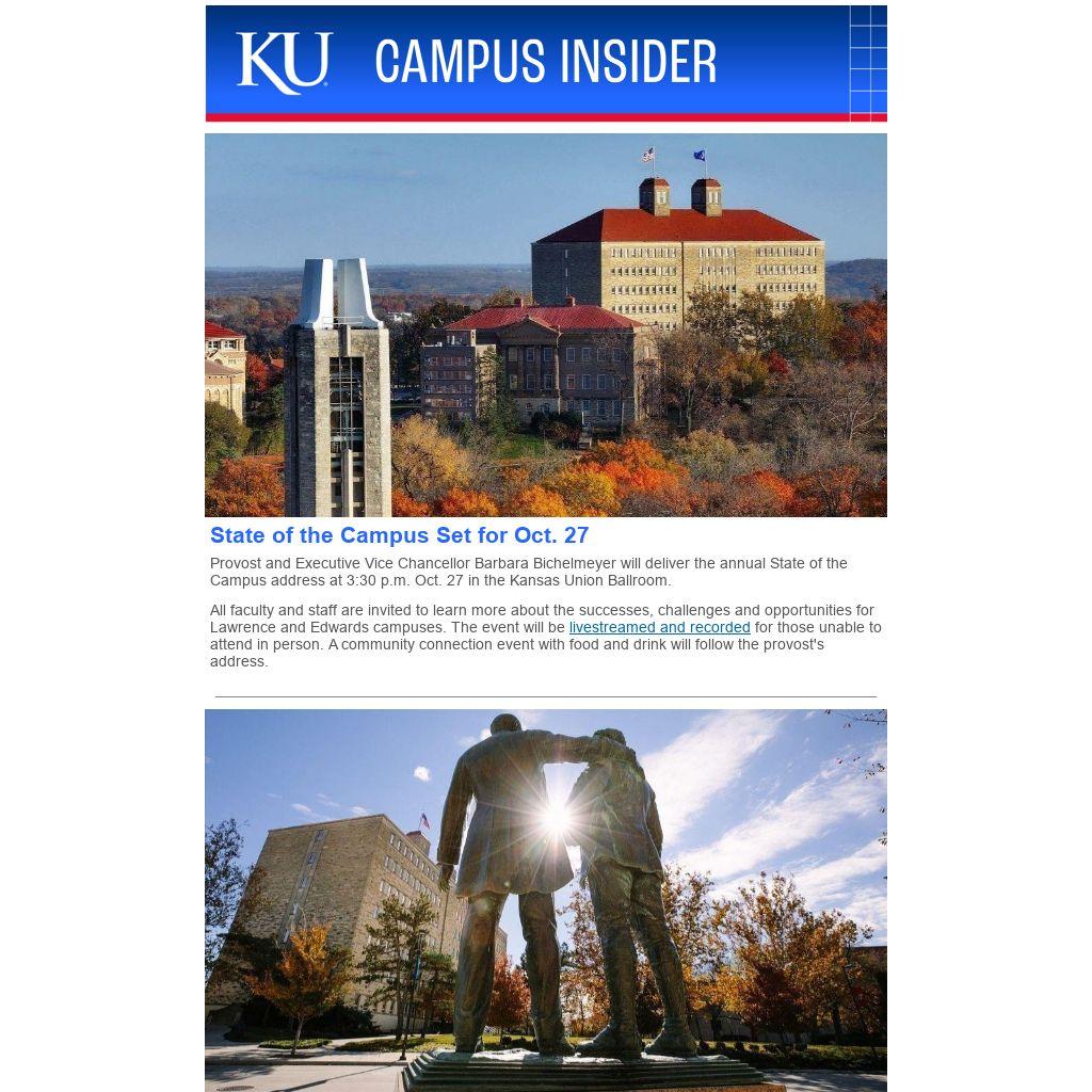 Provost and Executive Vice Chancellor Barbara Bichelmeyer will deliver the annual State of the Campus address at 3:30 p.m. Oct. 27 in the Kansas Union Ballroom.