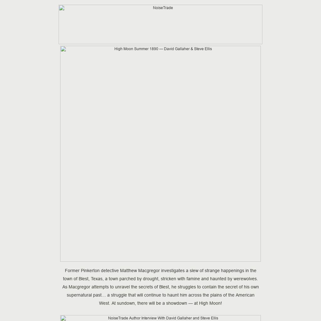 Former Pinkerton detective Matthew Macgregor investigates a slew of strange happenings in the town of Blest, Texas, a town parched by drought, stricken with famine and haunted by werewolves. As Macgregor attempts to unravel the secrets of Blest, he struggles to contain the secret of his own supernatural past… a struggle that will continue to haunt him across the plains of the American West. At sundown, there will be a showdown — at High Moon!
