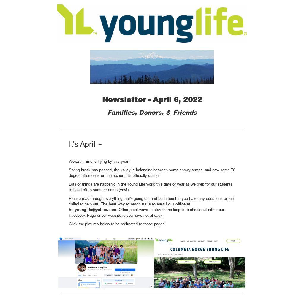 Want a way to celebrate a buisness owner, teacher, or inspirational community member this spring? Not sure what to get your mom for Mother's Day? We have an option to purchase a flower basket for "Someone Else". When you choose this option, Young Life will deliver your basket in Hood River County for you!