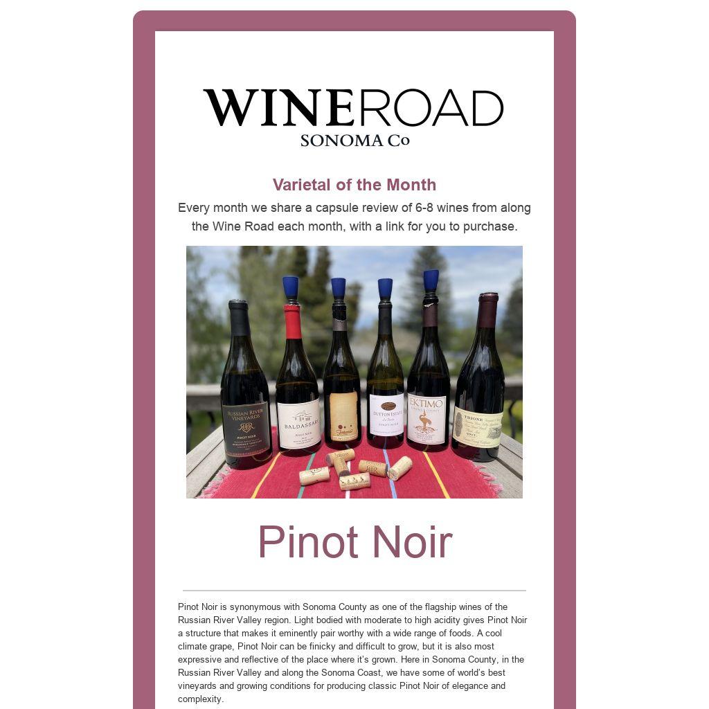 | Varietal of the Month Every month we share a capsule review of 6-8 wines from along the Wine Road each month, with a link for you to purchase.