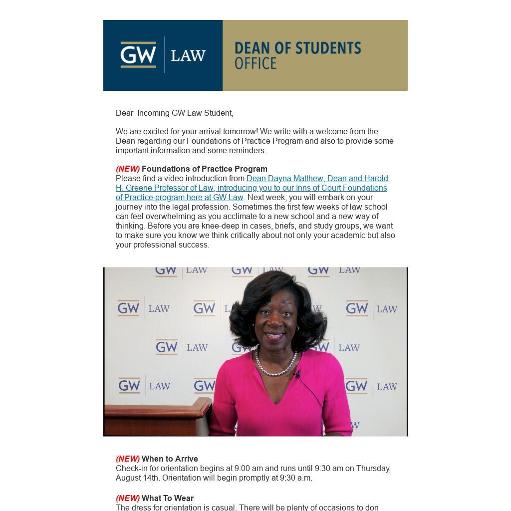 All law students will be automatically enrolled in GW Student Health Insurance Plan (SHIP) for 2025-2026. If you have other acceptable coverage you must waive by September 12, 2025 at University Health Plans. Please note the waiver form will be available on August 1st.