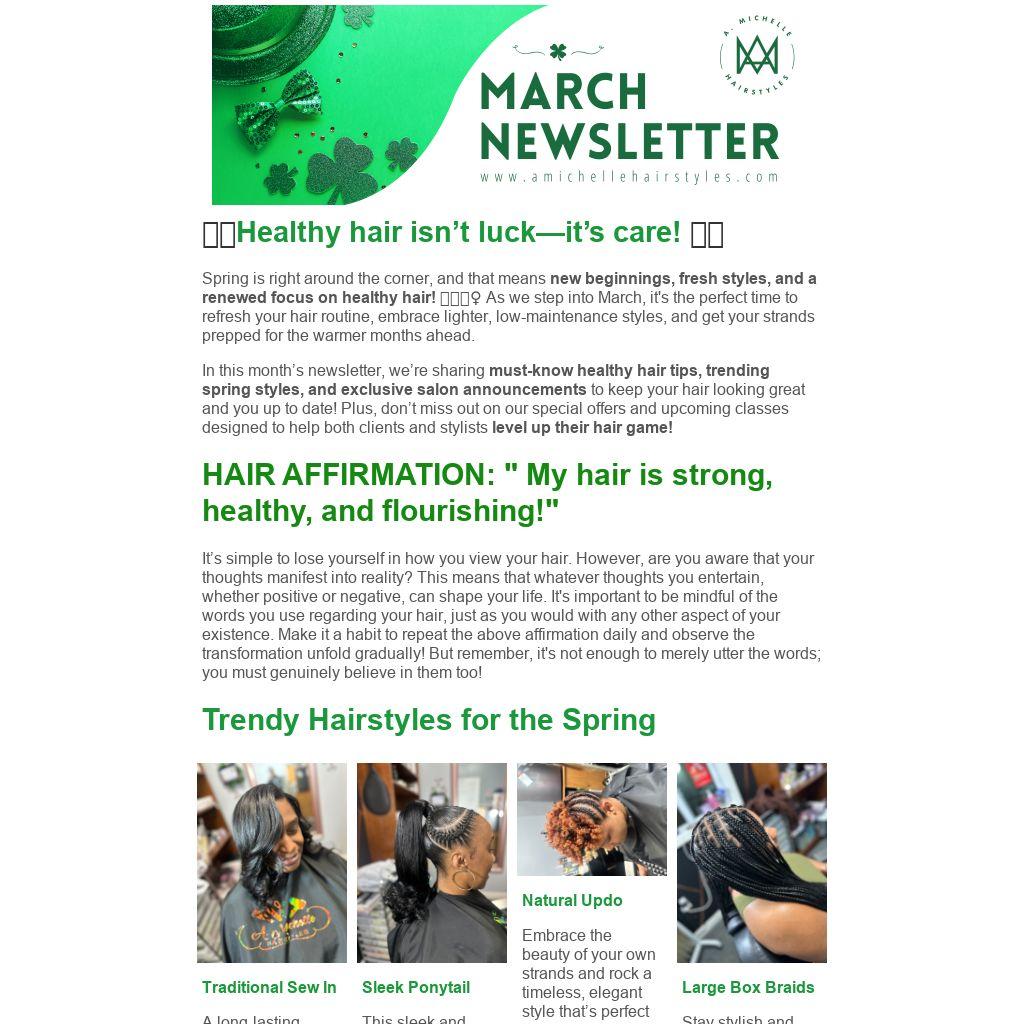 Spring is right around the corner, and that means new beginnings, fresh styles, and a renewed focus on healthy hair! 🌿💆🏾♀️ As we step into March, it's the perfect time to refresh your hair routine, embrace lighter, low-maintenance styles, and get your strands prepped for the warmer months ahead.