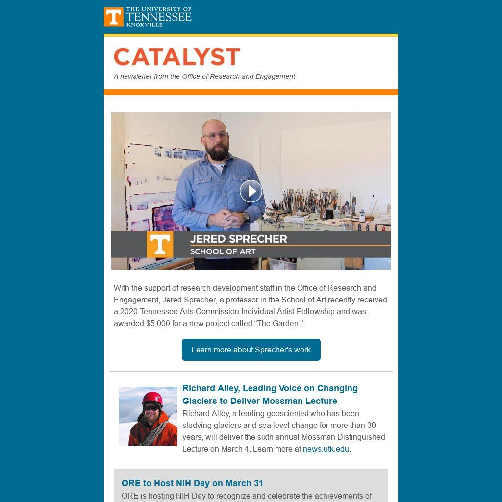 With the support of research development staff in the Office of Research and Engagement, Jered Sprecher, a professor in the School of Art recently received a 2020 Tennessee Arts Commission Individual Artist Fellowship and was awarded $5,000 for a new project called “The Garden.”