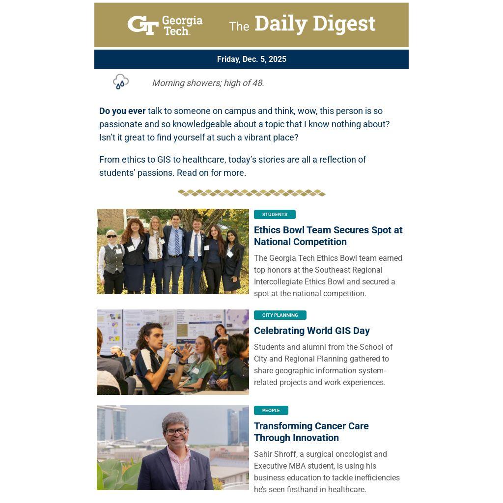 The Georgia Tech Ethics Bowl team earned top honors at the Southeast Regional Intercollegiate Ethics Bowl and secured a spot at the national competition.