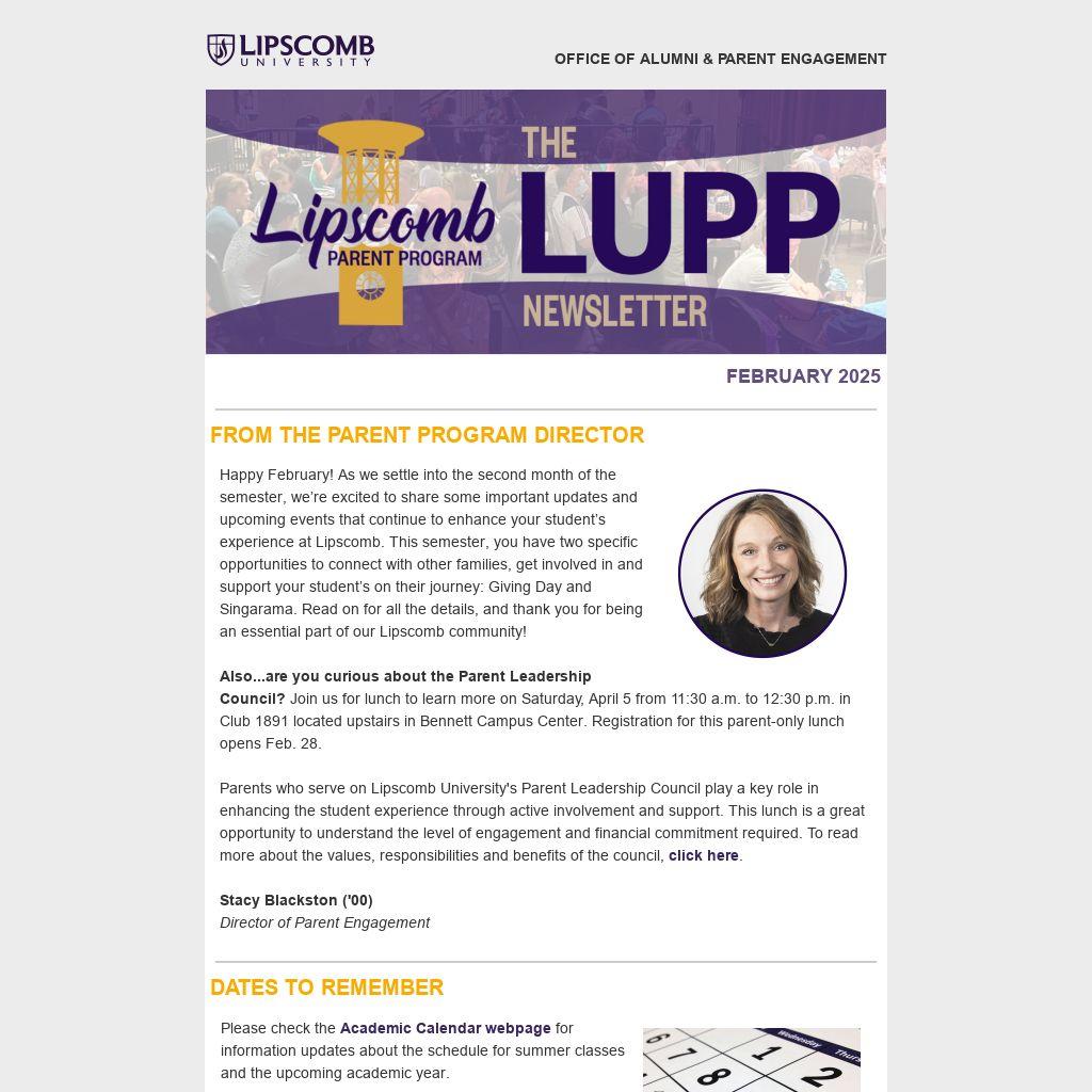 The Office of Parent Engagement is hosting the Singarama Family Dinner on April 5 from 5 to 6:30 p.m. in 1891 Club, located in Bennett Campus Center. We hope you and your family plan on attending. Enjoy a wonderful meal, fellowship with other families and exciting giveaways.