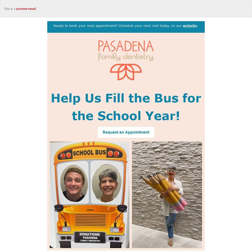 At Pasadena Family Dentistry, we love giving back to the community in any way we can. That’s why we’re very proud to announce that this year, we are participating in the Fill the Bus initiative.
