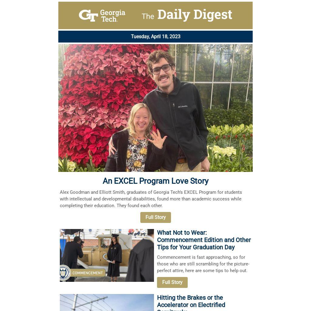 Alex Goodman and Elliott Smith, graduates of Georgia Tech’s EXCEL Program for students with intellectual and developmental disabilities, found more than academic success while completing their education. They found each other.