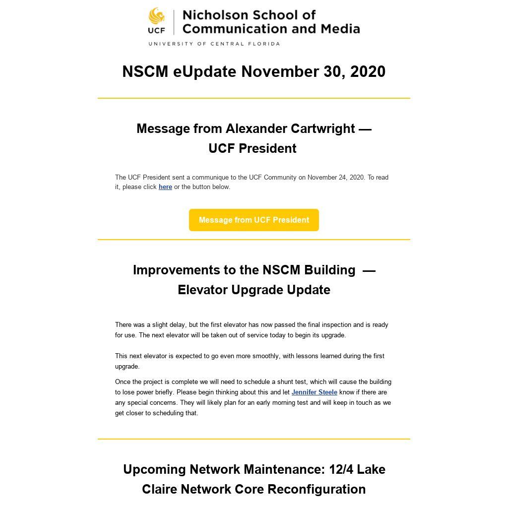 As a reminder, UCF will be closed as follows: