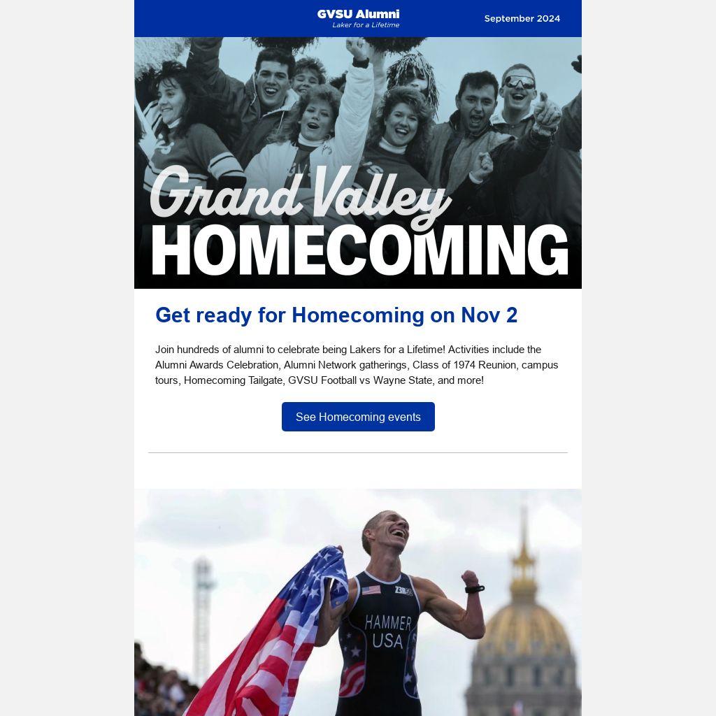 Homecoming, Laker wins gold at Paris, Family Weekend Tailgate, and more!