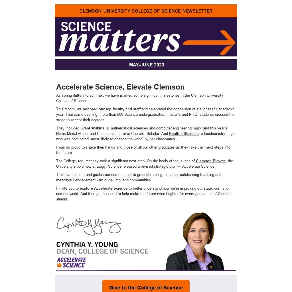 As spring drifts into summer, we have marked some significant milestones in the Clemson University College of Science.
