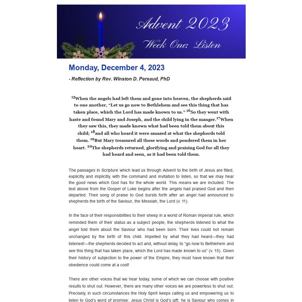 - Reflection by Rev. Winston D. Persaud, PhD