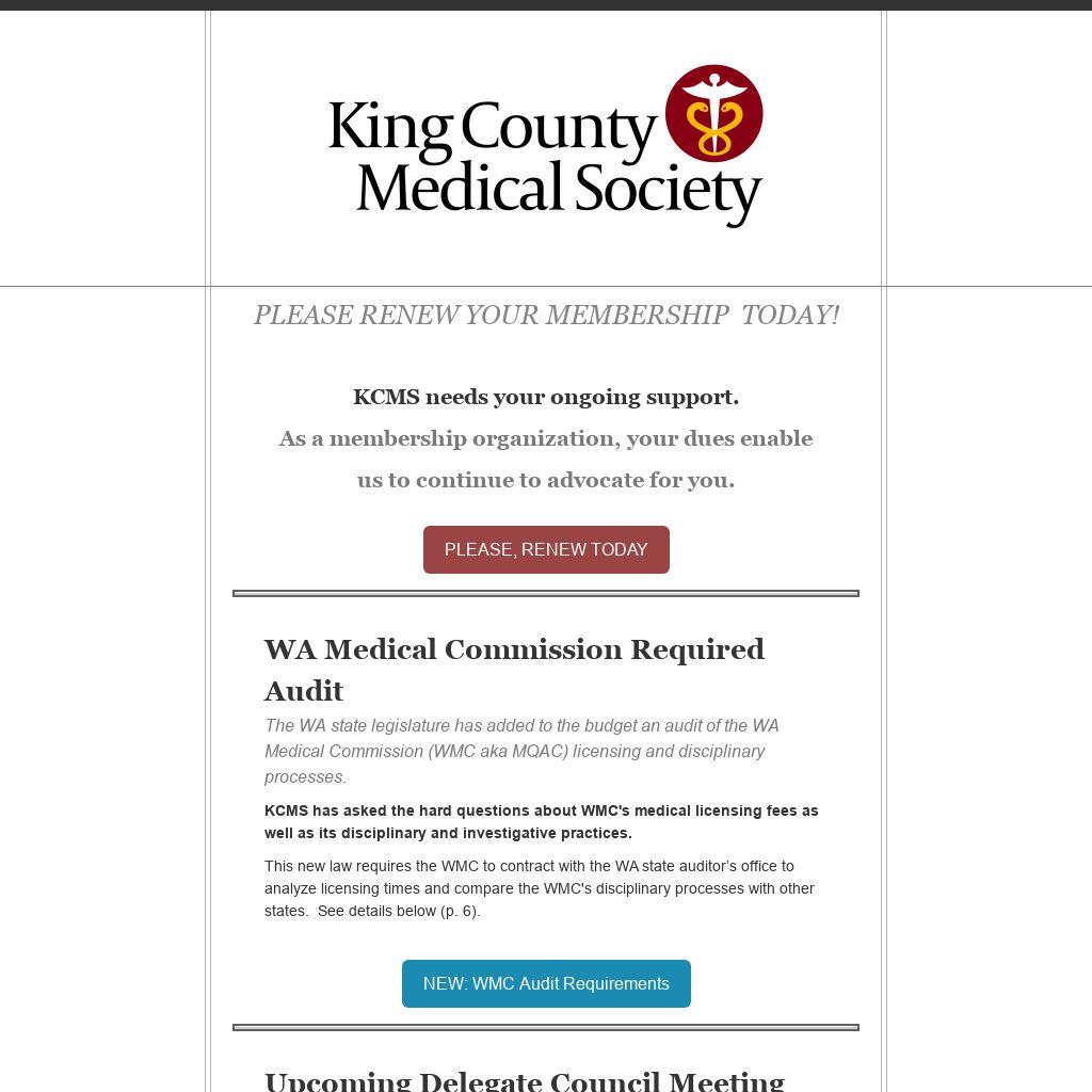 | KCMS needs your ongoing support. As a membership organization, your dues enable us to continue to advocate for you.