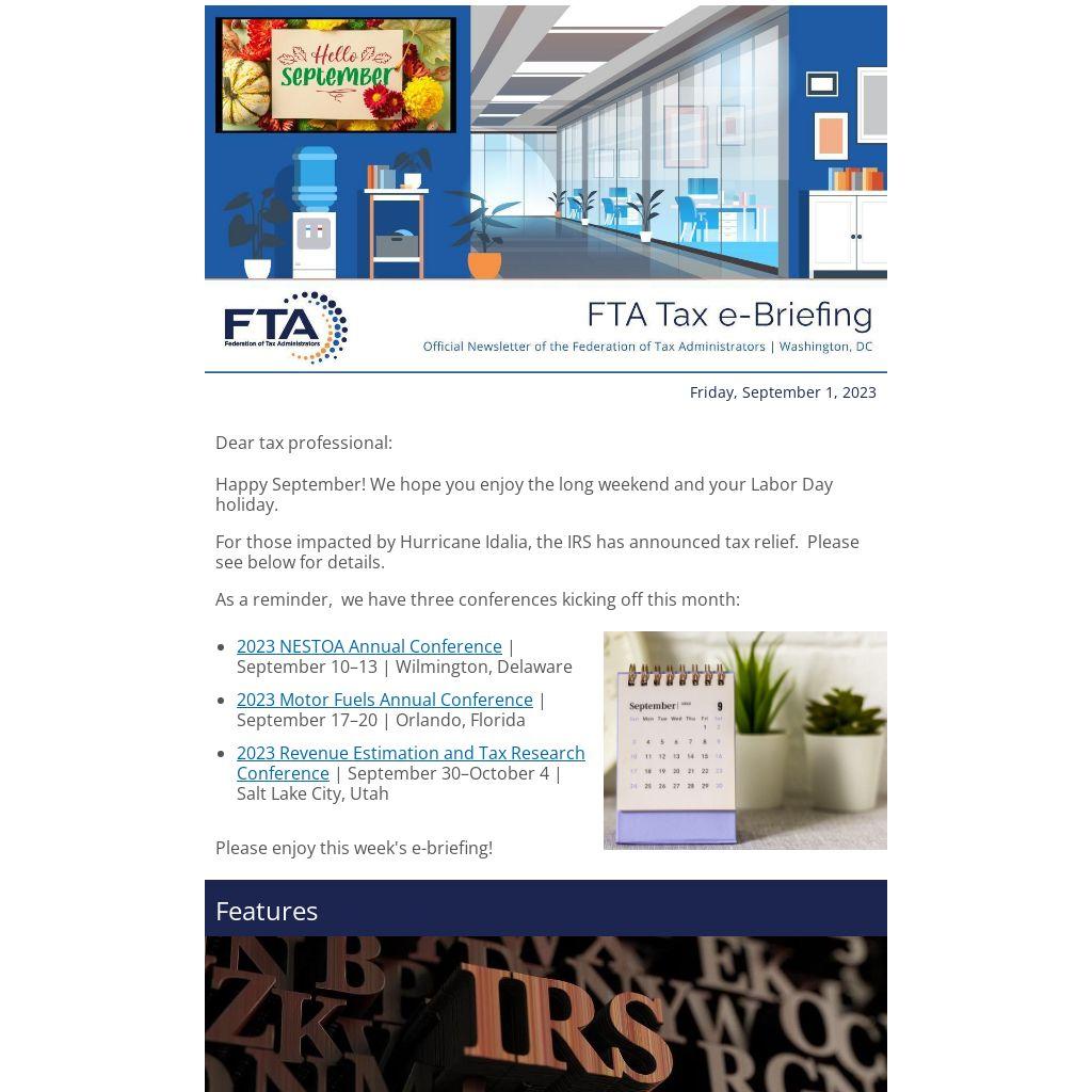 Have you recently published a tax article or contributed to scholarly research? If so, FTA would like to share your work with your colleagues. Send articles to: newsletter@taxadmin.org.
