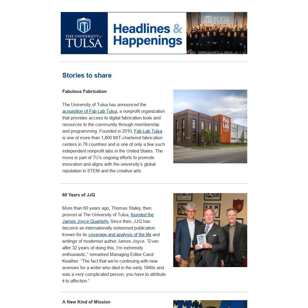 The University of Tulsa has announced the acquisition of Fab Lab Tulsa, a nonprofit organization that provides access to digital fabrication tools and resources to the community through membership and programming. Founded in 2010, Fab Lab Tulsa is one of more than 1,800 MIT-chartered fabrication centers in 78 countries and is one of only a few such independent nonprofit labs in the United States. The move is part of TU’s ongoing efforts to promote innovation and aligns with the university’s global reputation in STEM and the creative arts.