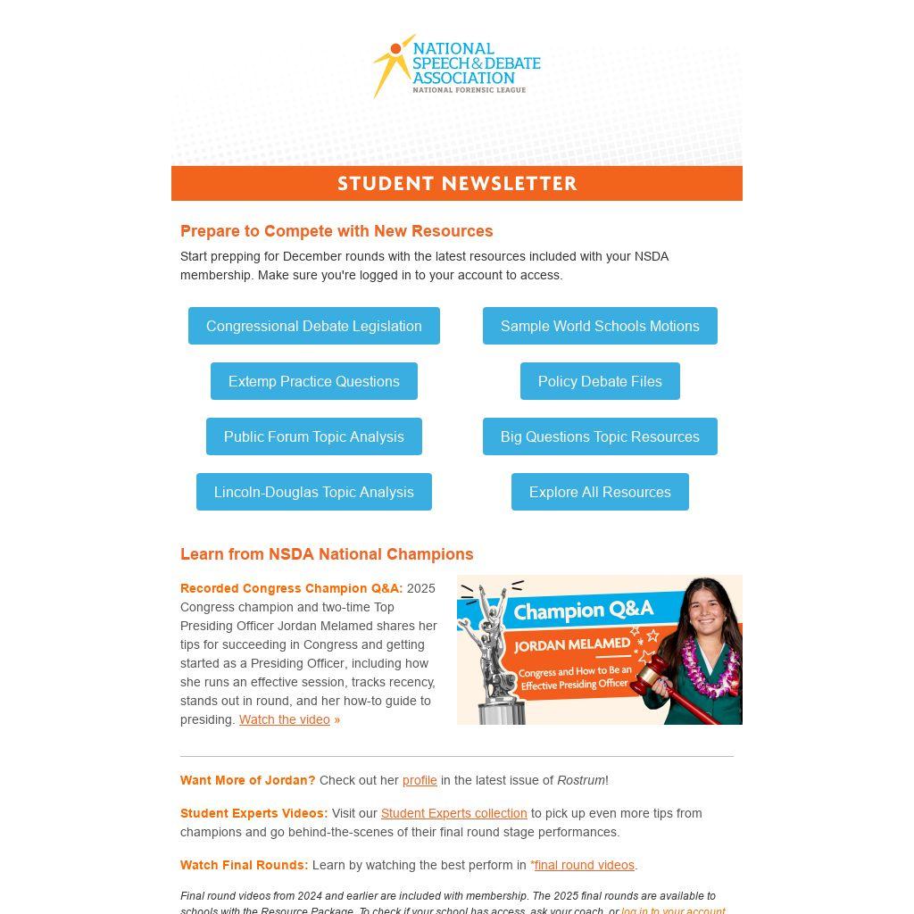 Start prepping for December rounds with the latest resources included with your NSDA membership. Make sure you're logged in to your account to access.