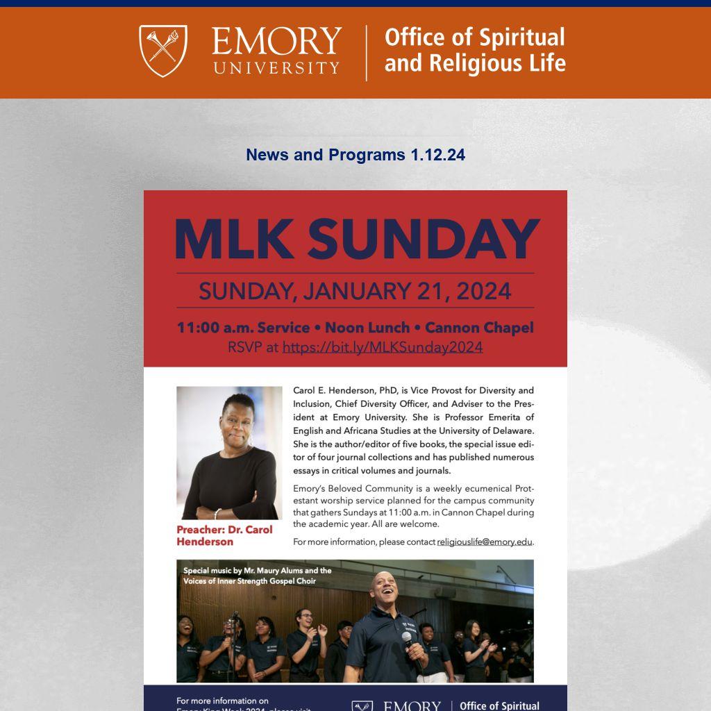 Emory OSRL ENews is published weekly during term by the Emory University Office of Spiritual and Religious Life publicizing Atlanta-campus spiritual life programs. It is not a comprehensive listing. For Oxford College spiritual life, please click here. To submit information or to update your preferences, please contact religiouslife@emory.edu.