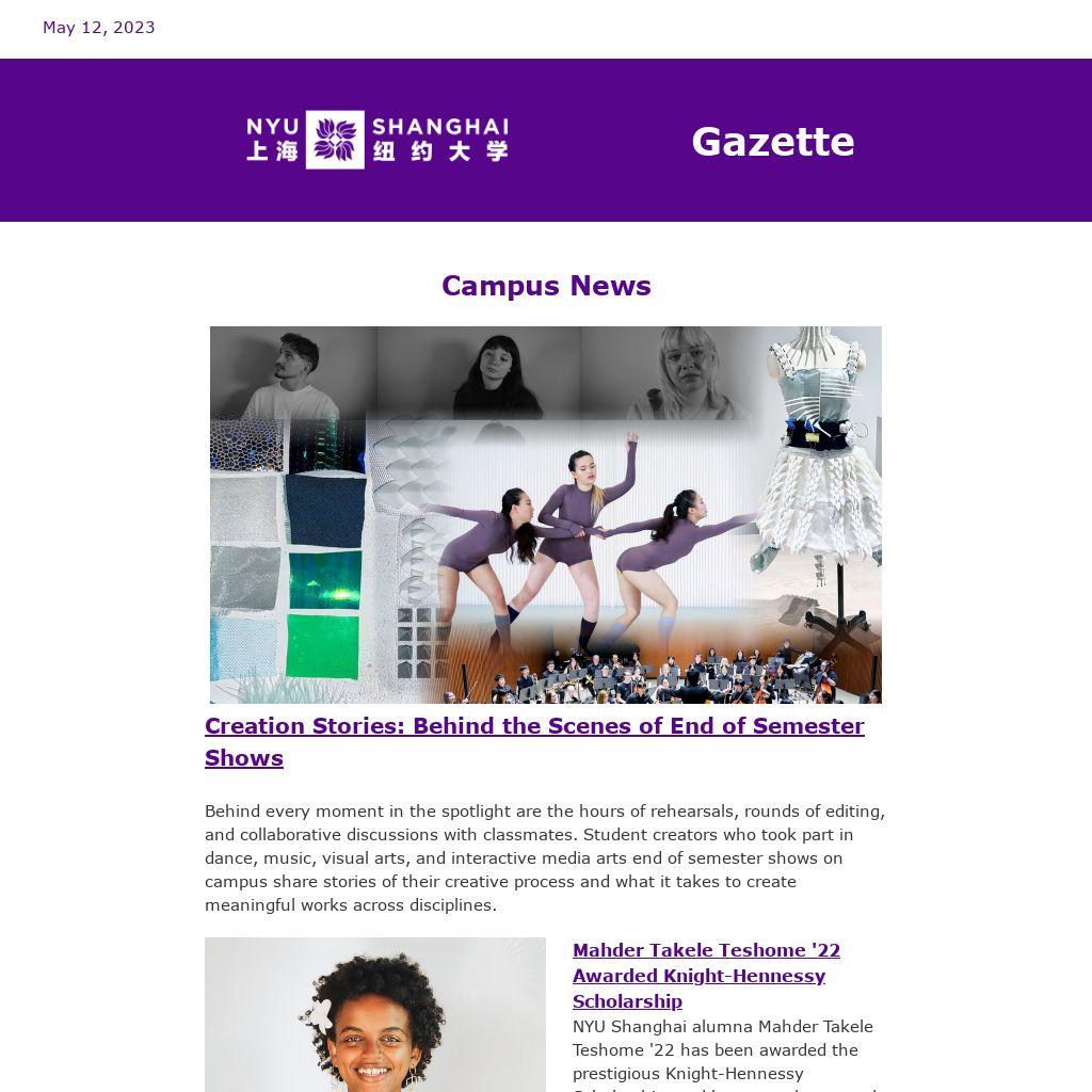 For a complete listing of events at NYU Shanghai, check out the Weekly Events Newsletter, delivered to your inbox every Monday when school is in session. If you wish to highlight your event in the Weekly Events Newsletter, upload your event to Engage no later than the Thursday before the Monday newsletter.
