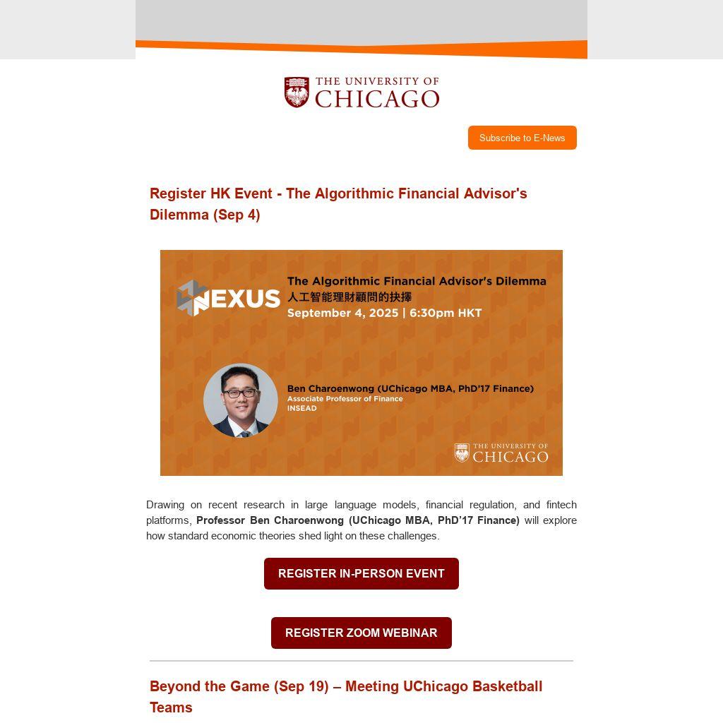 Join the UChicago Men’s and Women’s Basketball teams for a panel discussion in Hong Kong on September 19! Discover how student-athletes excel both in rigorous academics and elite athletics — without reducing their course load. Get firsthand insights into life in Hyde Park, time management, recruitment, and diverse career paths, from finance to professional sports.