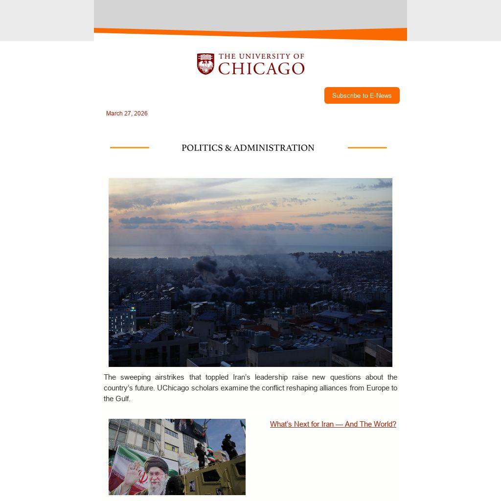 The sweeping airstrikes that toppled Iran’s leadership raise new questions about the country’s future. UChicago scholars examine the conflict reshaping alliances from Europe to the Gulf.