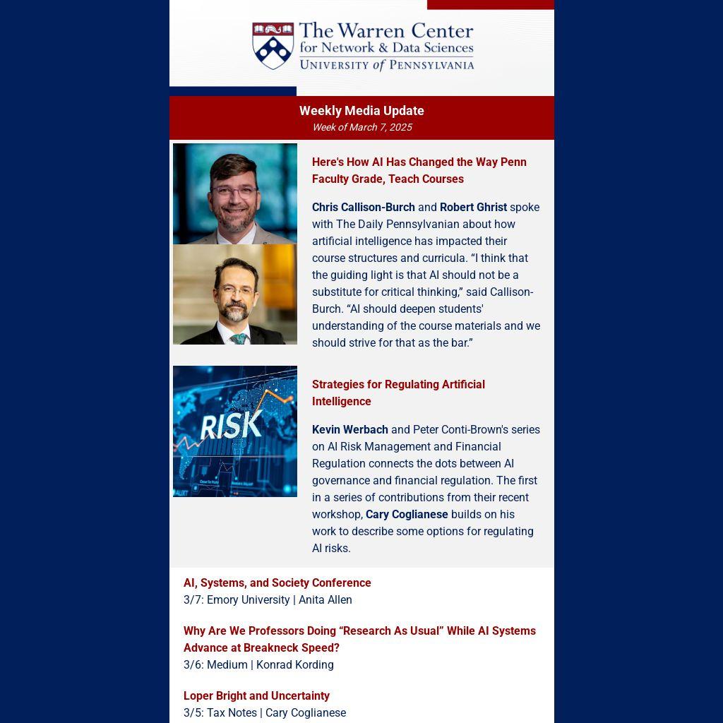 Chris Callison-Burch and Robert Ghrist spoke with The Daily Pennsylvanian about how artificial intelligence has impacted their course structures and curricula. “I think that the guiding light is that AI should not be a substitute for critical thinking,” said Callison-Burch. “AI should deepen students' understanding of the course materials and we should strive for that as the bar.”