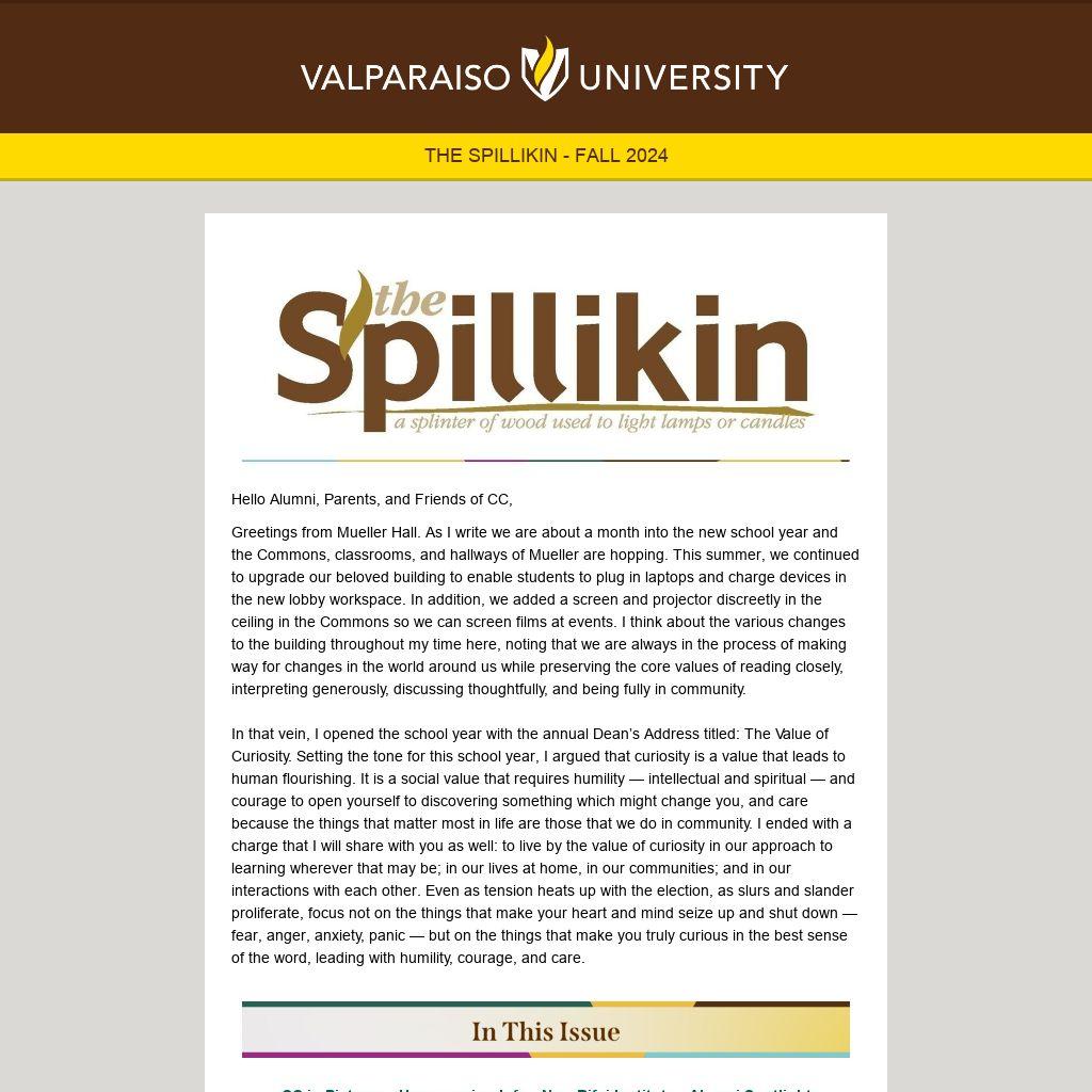 As we begin another exciting recruitment cycle searching for the Class of 2029 CC Scholars, your memories and advice will help sustain our community of learning and shine a light on how truly special the Valpo CC experience is. Share your story by filling out the Christ College Alumni Spotlight form and we’ll feature you on Christ College social media, here in our Spillikin e-newsletter, on our website, and in other important communications to the CC community.