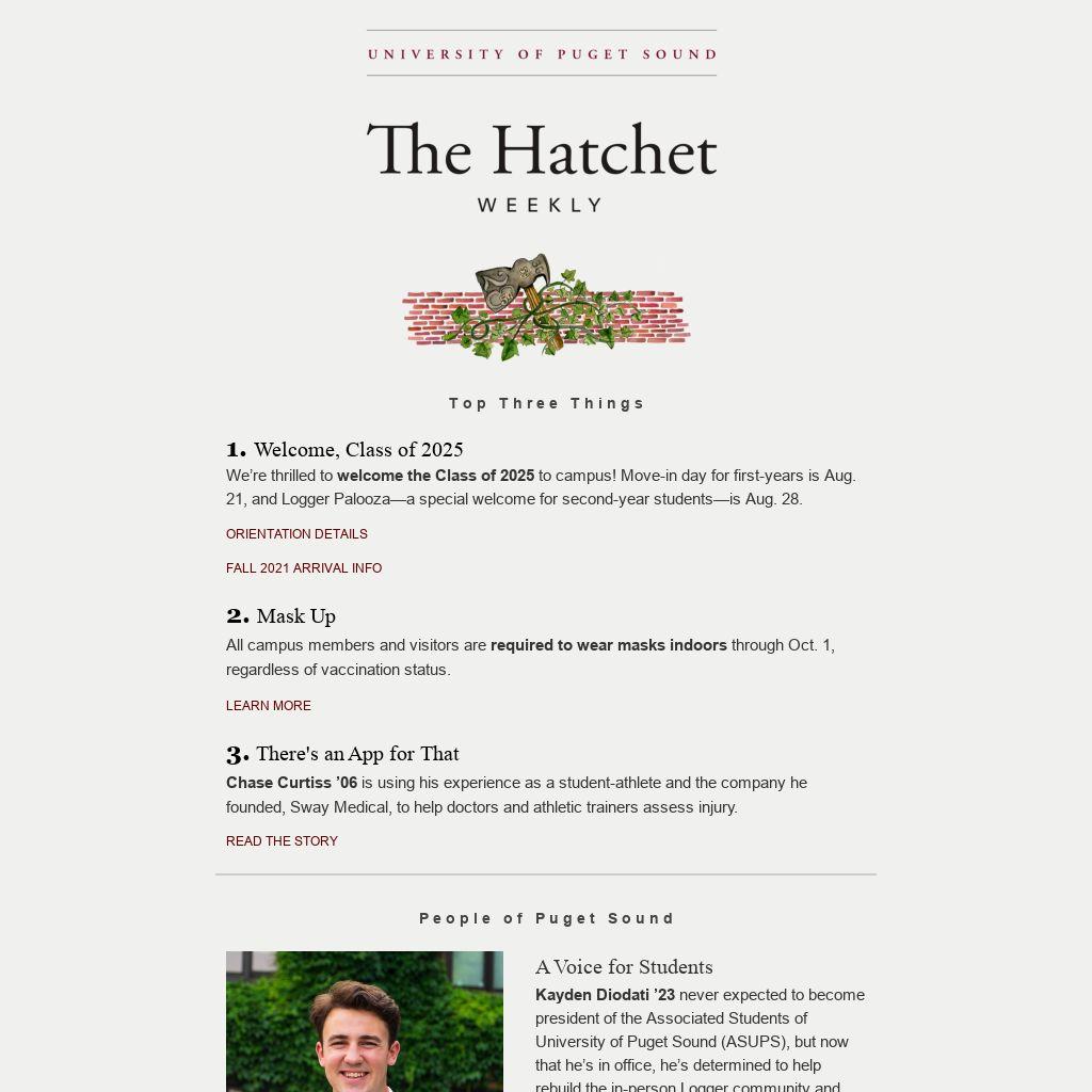 Kayden Diodati ’23 never expected to become president of the Associated Students of University of Puget Sound (ASUPS), but now that he’s in office, he’s determined to help rebuild the in-person Logger community and advocate for student concerns and ideas. The California native first discovered Puget Sound while on a road trip with his dad and loved that the campus was small enough that he could be a person here and not a number. A double major in business leadership and politics and government, Diodati has worked as a resident community coordinator and campus tour guide, and has been active in Greek life. “I want every student to know that we’re here to support them," he says. "There are a lot of resources available through our student government, like ORCA cards, the emergency fund, and funding set aside for clubs. We’re here to serve them.”
