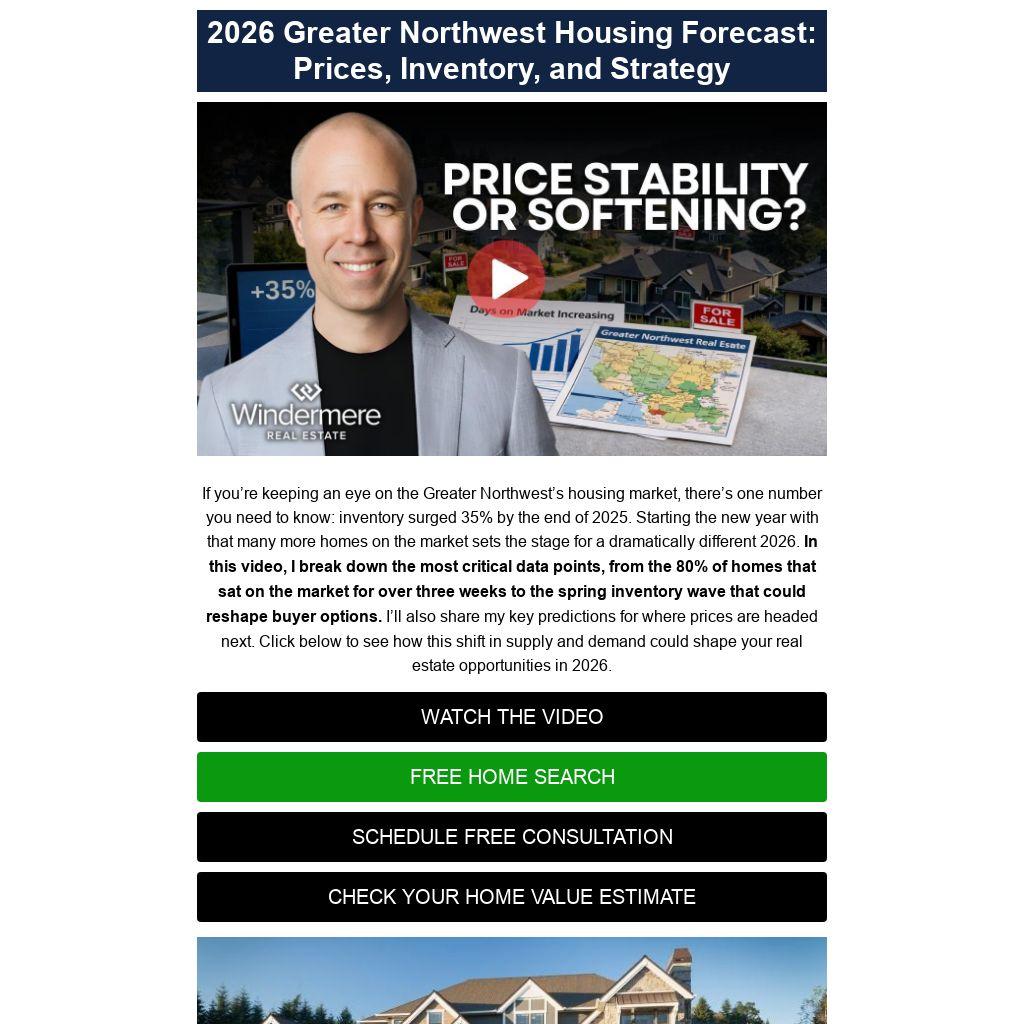 If you’re keeping an eye on the Greater Northwest’s housing market, there’s one number you need to know: inventory surged 35% by the end of 2025. Starting the new year with that many more homes on the market sets the stage for a dramatically different 2026. In this video, I break down the most critical data points, from the 80% of homes that sat on the market for over three weeks to the spring inventory wave that could reshape buyer options. I’ll also share my key predictions for where prices are headed next. Click below to see how this shift in supply and demand could shape your real estate opportunities in 2026.