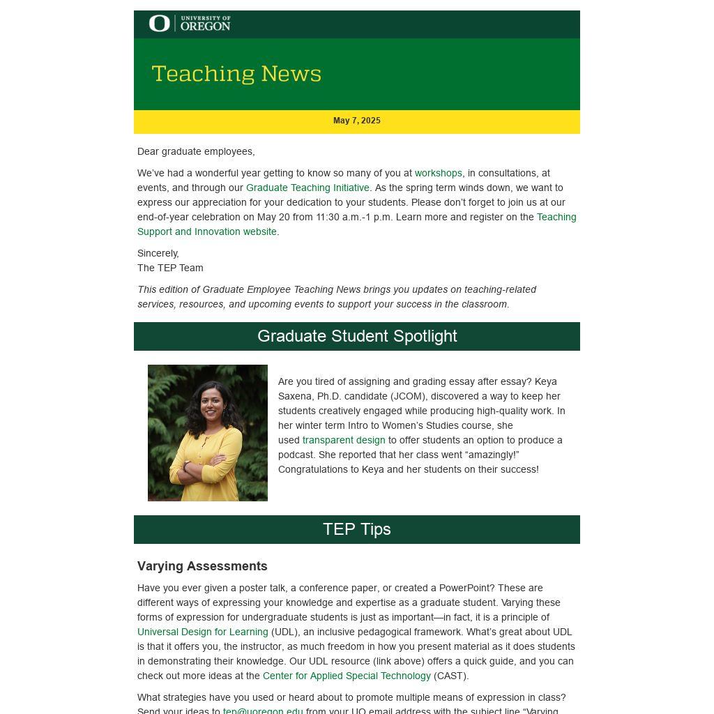 | 1258 University of Oregon, Eugene OR 97403-1258 tep@uoregon.edu | teaching.uoregon.edu