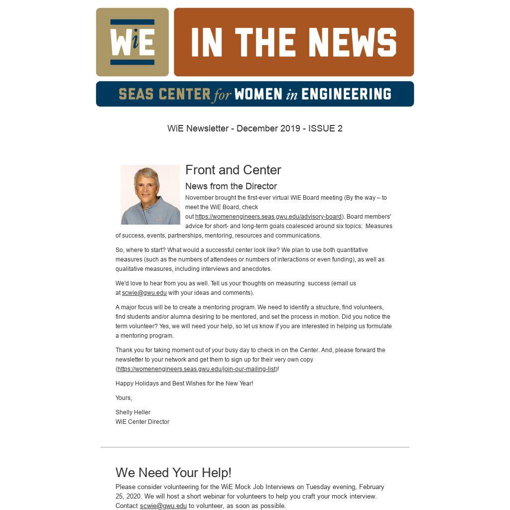 During e-week, on February 19, 2020, the Center plans to coordinate a panel titled “Why Engineering Needs Many Voices” during the newly expanded e-week. We will have a few opportunities for SEAS community, including alumni, to engage in activities such as Buffalo or Microaggression (if they have not yet done so). The staff of the GW Office of Diversity and Inclusion has offered to present a few workshops during the day as well. We will end the day with a major speaker on the topic – speaker to be identified.
