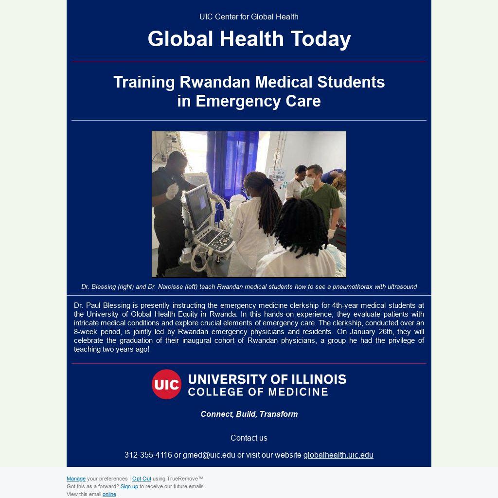 Dr. Paul Blessing is presently instructing the emergency medicine clerkship for 4th-year medical students at the University of Global Health Equity in Rwanda. In this hands-on experience, they evaluate patients with intricate medical conditions and explore crucial elements of emergency care. The clerkship, conducted over an 8-week period, is jointly led by Rwandan emergency physicians and residents. On January 26th, they will celebrate the graduation of their inaugural cohort of Rwandan physicians, a group he had the privilege of teaching two years ago!