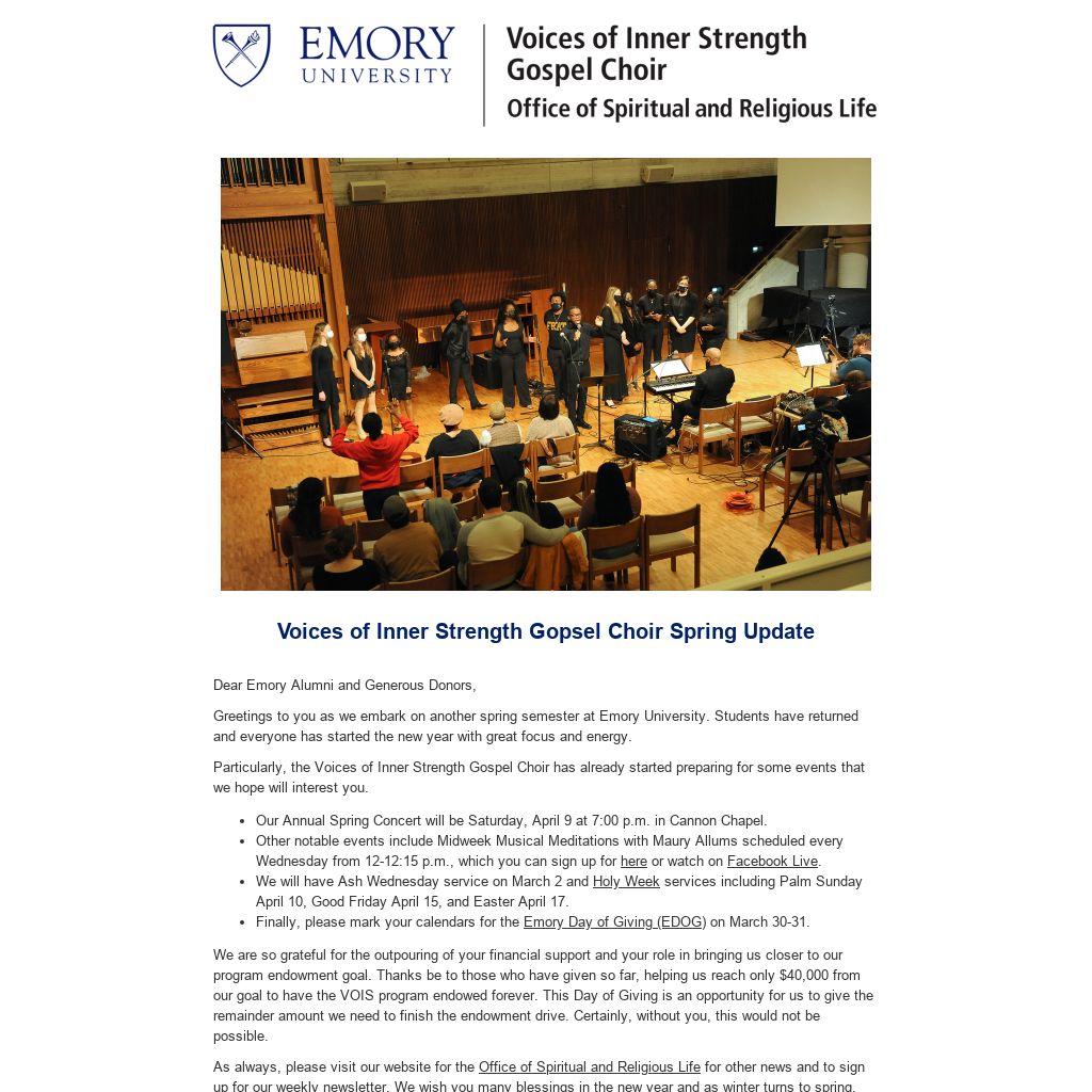 - Finally, please mark your calendars for the Emory Day of Giving (EDOG) on March 30-31.