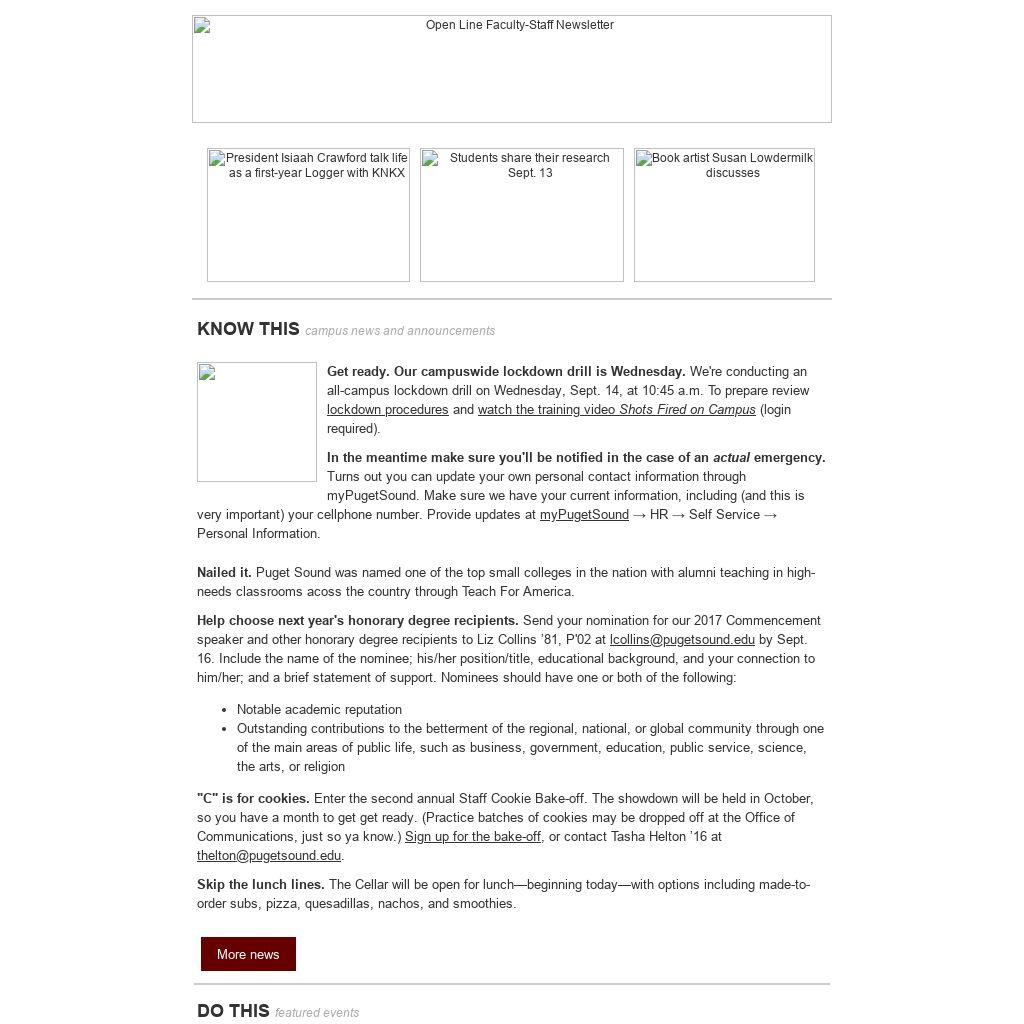 was interviewed on campus move-in day about his new role and college issues by Public Radio KNKX (formerly KPLU).