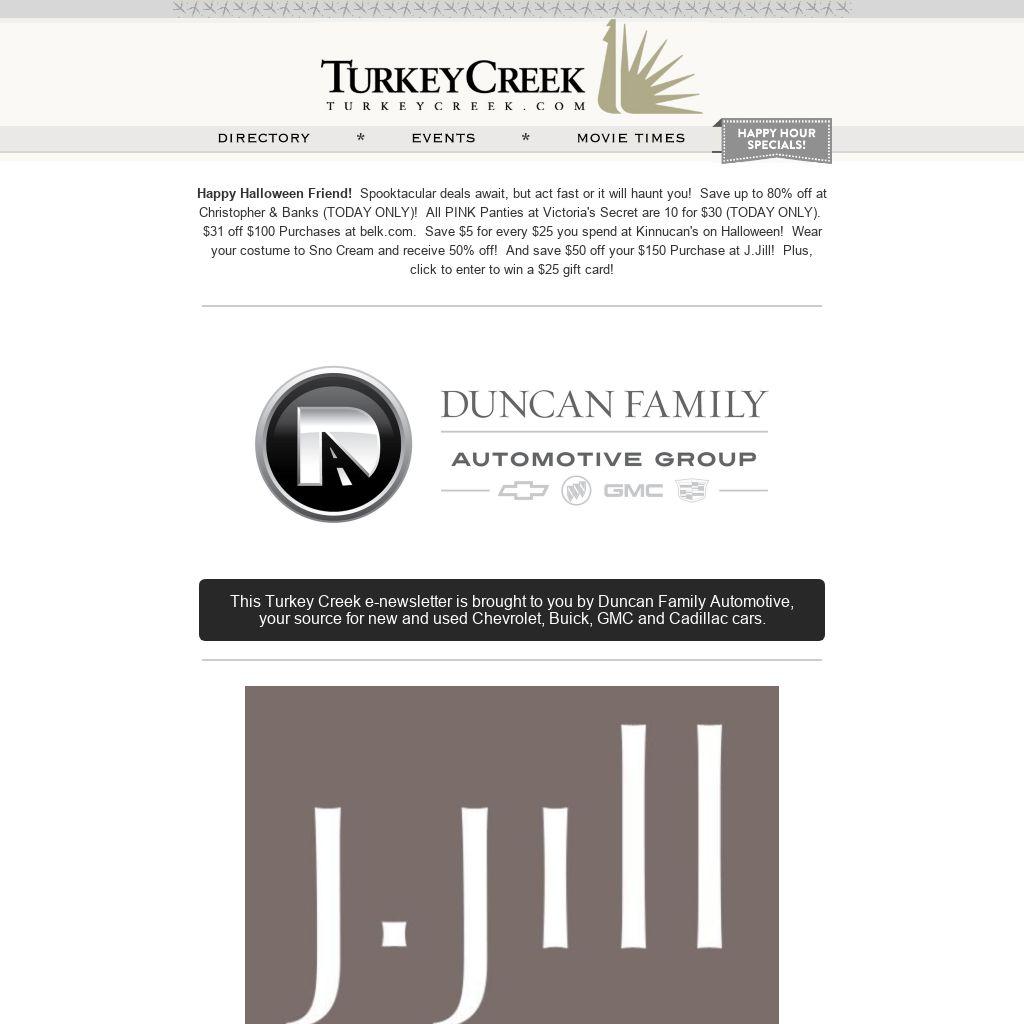 Happy Halloween Friend! Spooktacular deals await, but act fast or it will haunt you! Save up to 80% off at Christopher & Banks (TODAY ONLY)! All PINK Panties at Victoria's Secret are 10 for $30 (TODAY ONLY). $31 off $100 Purchases at belk.com. Save $5 for every $25 you spend at Kinnucan's on Halloween! Wear your costume to Sno Cream and receive 50% off! And save $50 off your $150 Purchase at J.Jill! Plus, click to enter to win a $25 gift card!