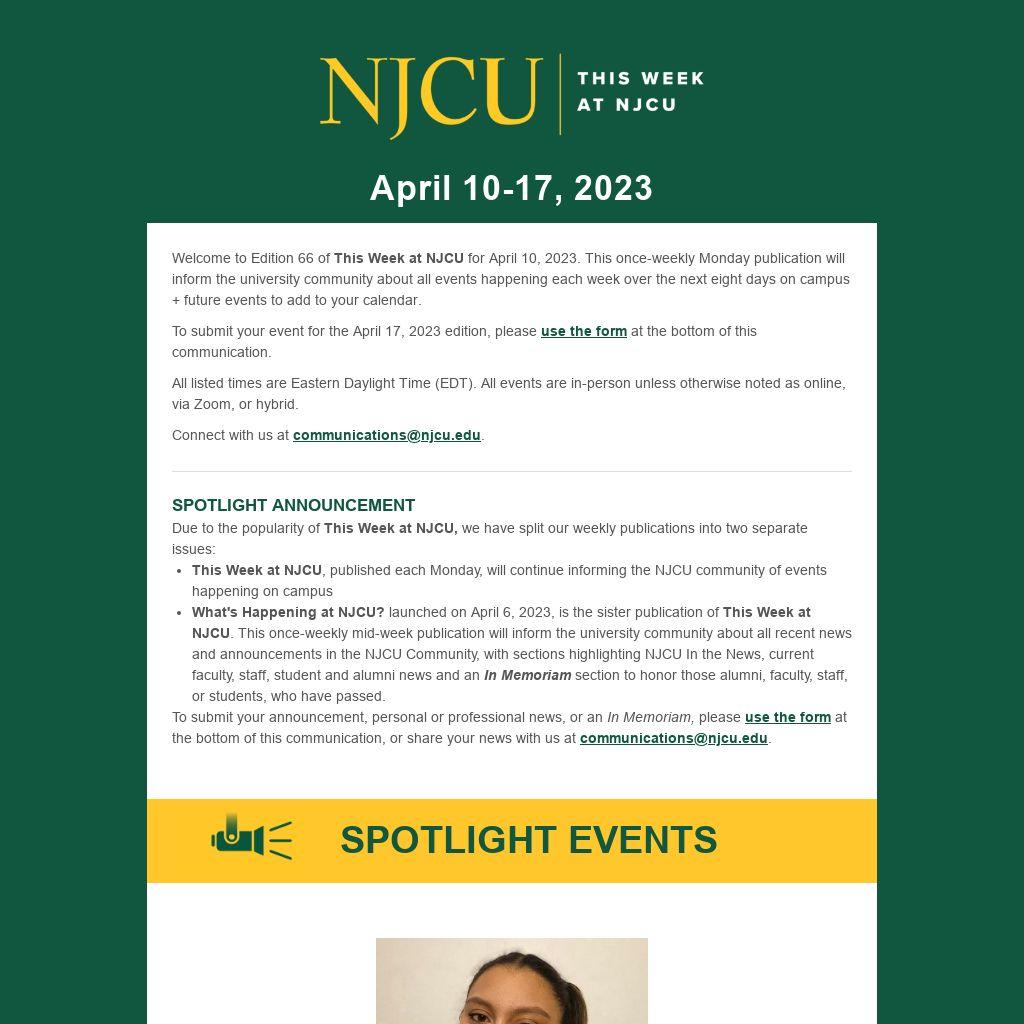Due to the popularity of This Week at NJCU, we have split our weekly publications into two separate issues:
