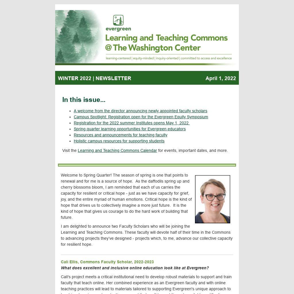 Learning and Teaching Commons newsletter is delivered to your inbox on the first Friday of the month during the quarter.