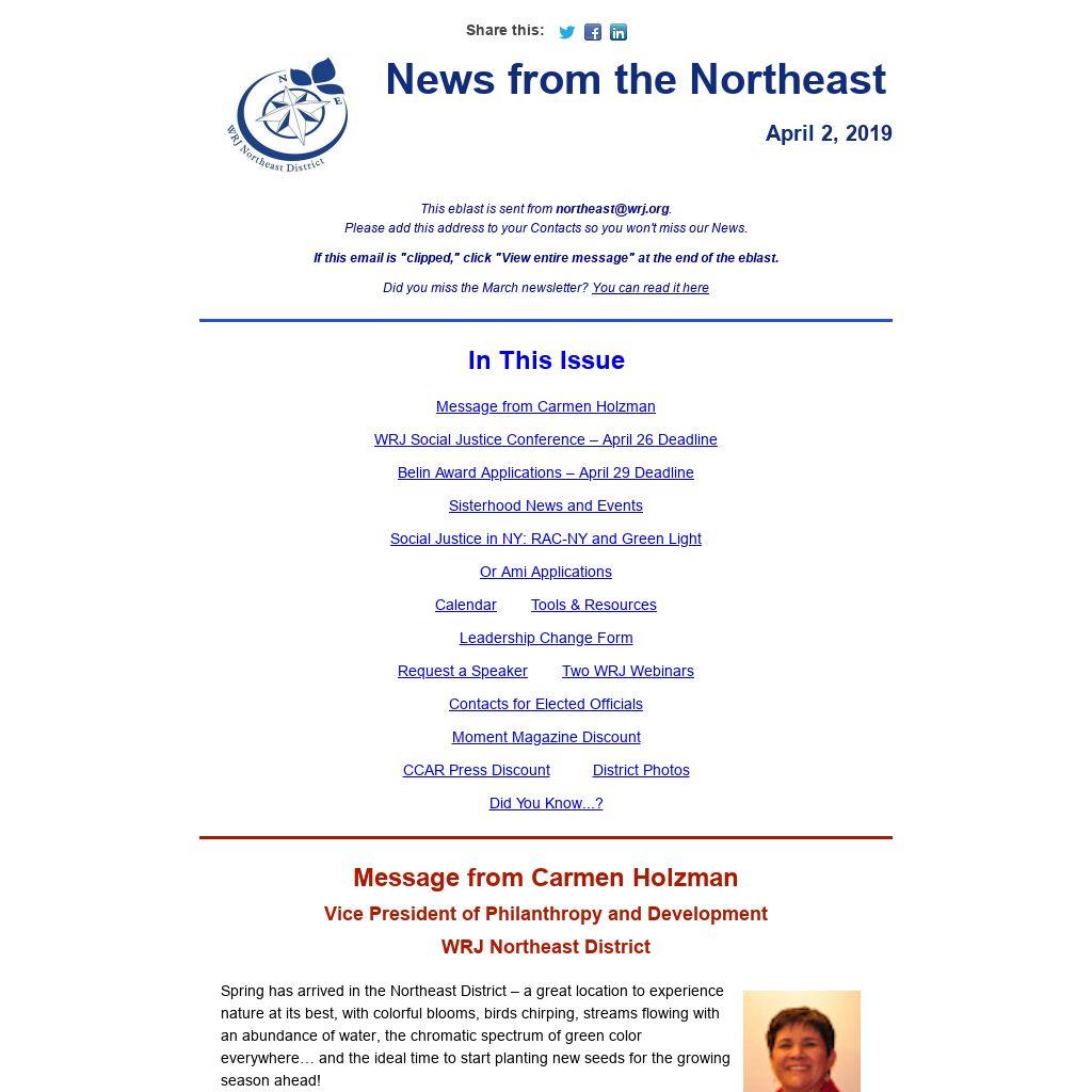 WRJ Northeast District YES Fund Chair