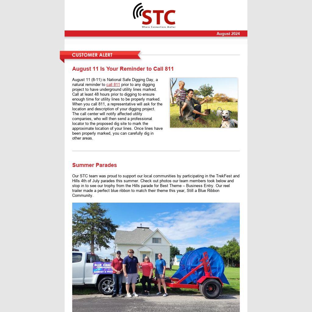 ![]() Our STC team was proud to support our local communities by participating in the TrekFest and Hills 4th of July parades this summer. Check out photos our team members took below and stop in to see our trophy from the Hills parade for Best Theme – Business Entry. Our reel trailer made a perfect blue ribbon to match their theme this year, Still a Blue Ribbon Community.