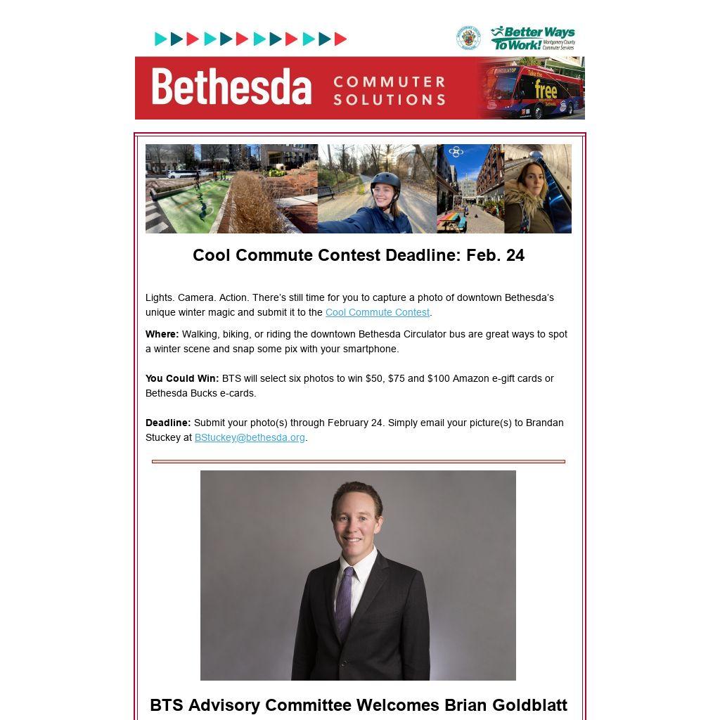 “I hope we can get more people out this spring using our bike lanes and other great outdoor facilities,” Brian said. “Through my work on the BTS Advisory Committee as well as Donohoe’s Green Team, I’m looking forward to helping reduce downtown Bethesda’s carbon footprint.”