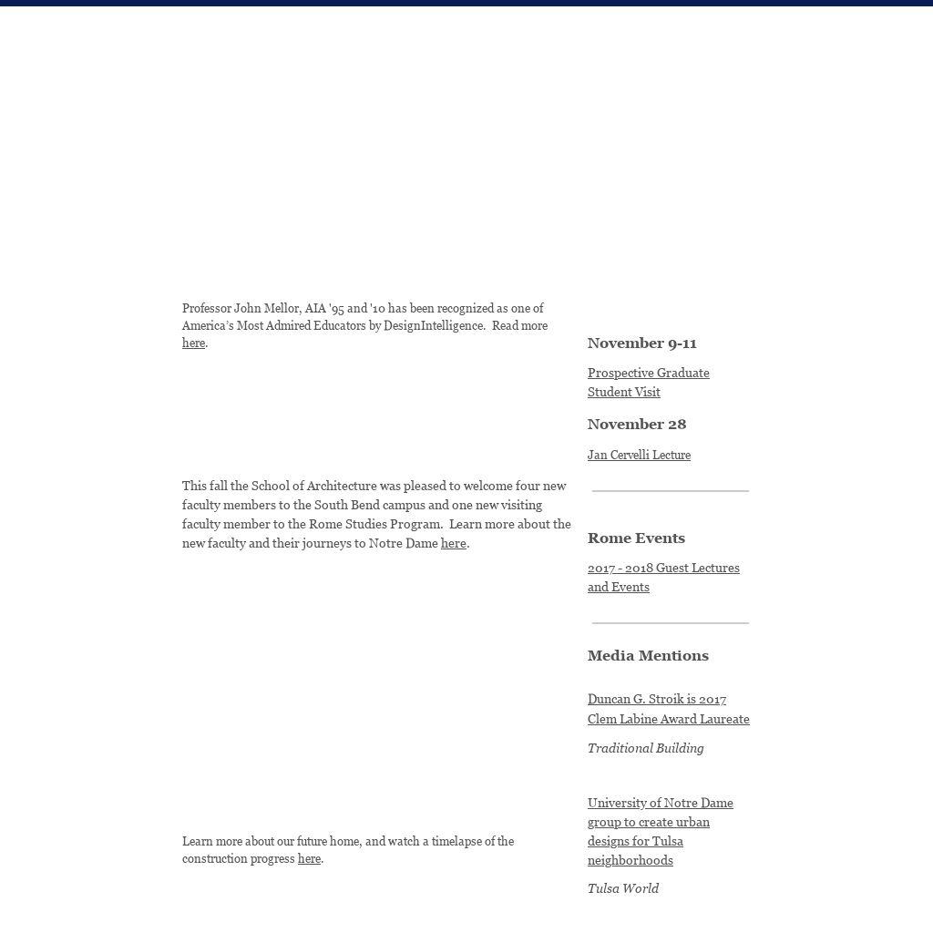 This fall the School of Architecture was pleased to welcome four new faculty members to the South Bend campus and one new visiting faculty member to the Rome Studies Program. Learn more about the new faculty and their journeys to Notre Dame here.