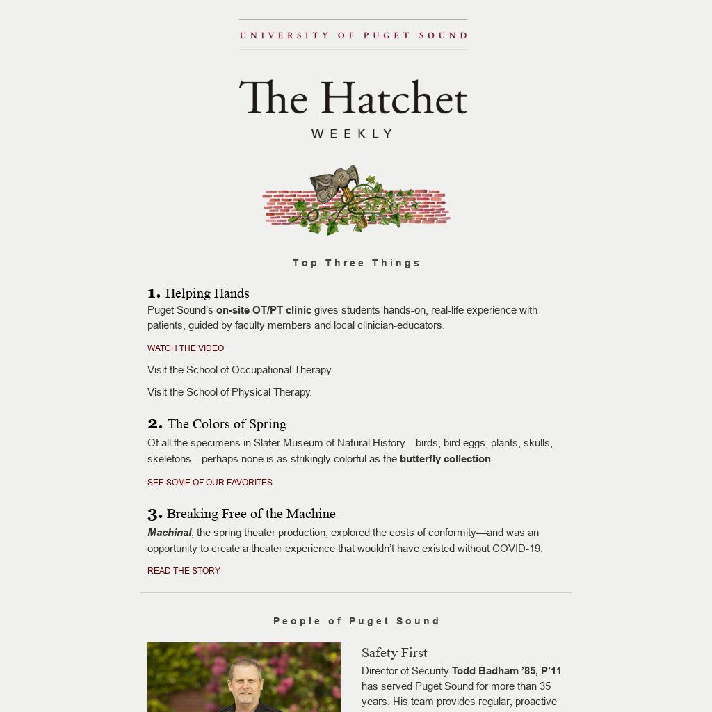 Director of Security Todd Badham ’85, P’11 has served Puget Sound for more than 35 years. His team provides regular, proactive patrols on campus and in the surrounding neighborhood, and 24/7 security escort services on campus, in addition to maintaining a close working relationship with the Tacoma Police Department. He enjoys assisting students. “For me,” he says, “working here is pretty much a way of life, and that’s a great relationship to have.”