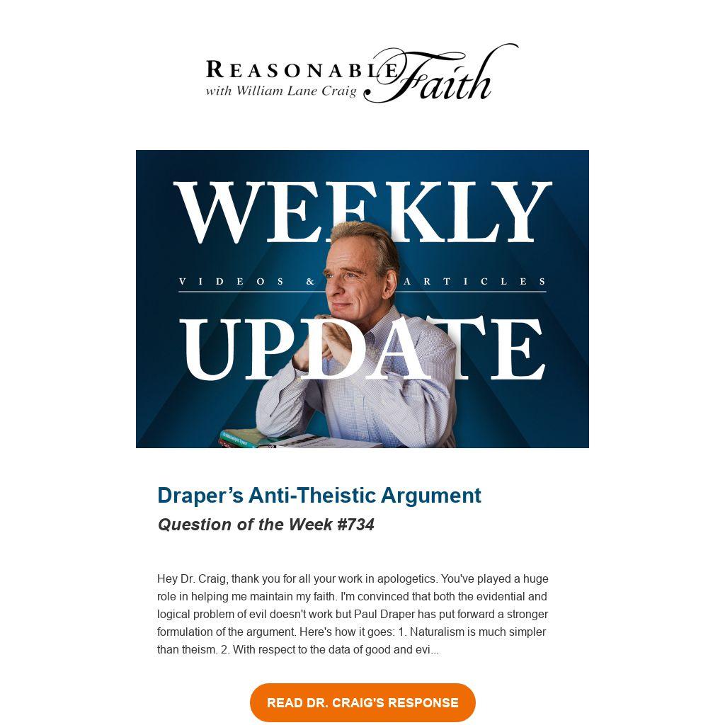 Hey Dr. Craig, thank you for all your work in apologetics. You've played a huge role in helping me maintain my faith. I'm convinced that both the evidential and logical problem of evil doesn't work but Paul Draper has put forward a stronger formulation of the argument. Here's how it goes: 1. Naturalism is much simpler than theism. 2. With respect to the data of good and evi...