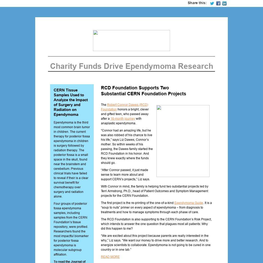 With Connor in mind, the family is helping fund two substantial projects led by Terri Armstrong, Ph.D., head of Patient Outcomes and Symptom Management projects for the CERN Foundation.