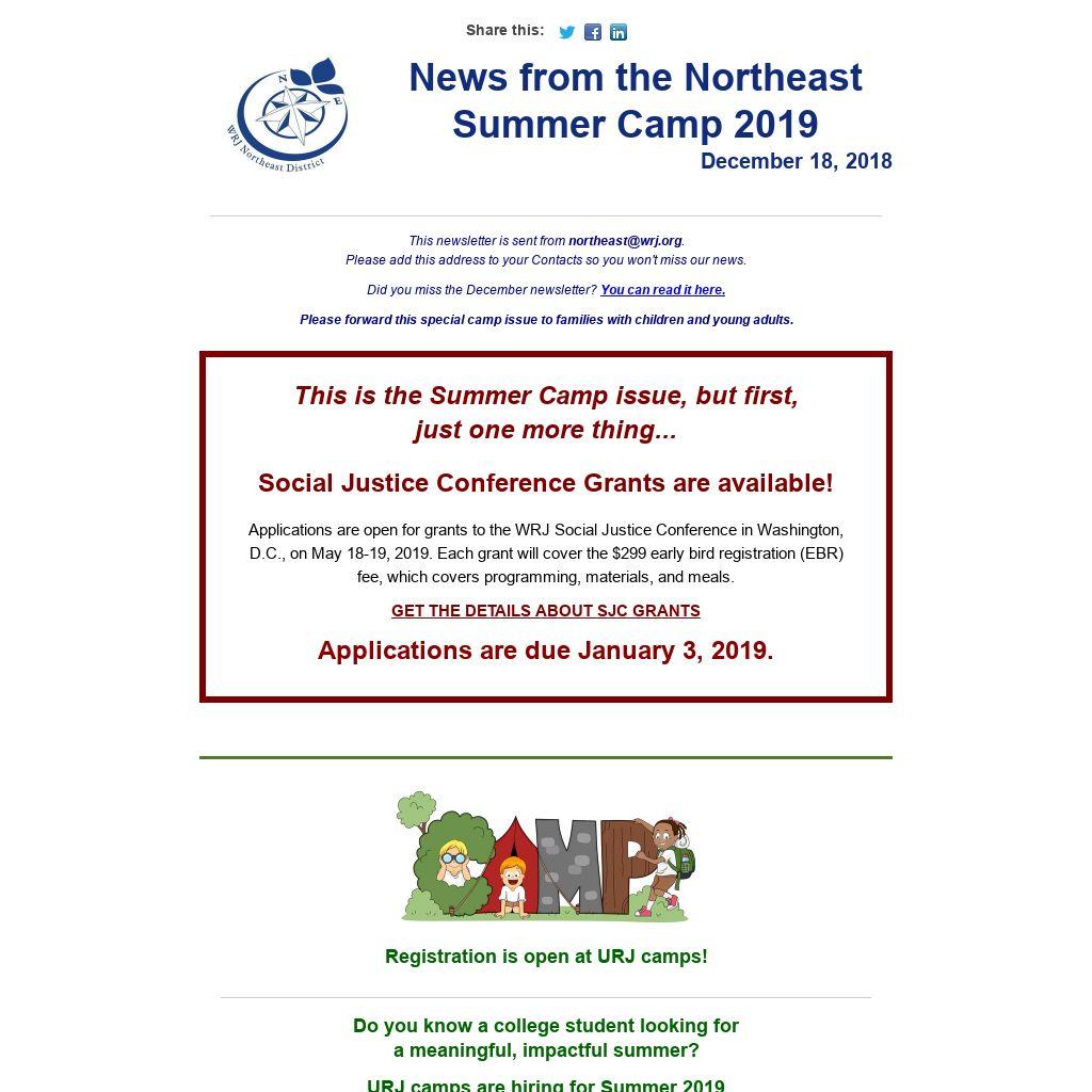 just one more thing... Social Justice Conference Grants are available! Applications are open for grants to the WRJ Social Justice Conference in Washington, D.C., on May 18-19, 2019. Each grant will cover the $299 early bird registration (EBR) fee, which covers programming, materials, and meals. Applications are due January 3, 2019.