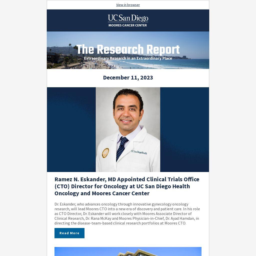 Ramez N. Eskander, MD Appointed Clinical Trials Office (CTO) Director for Oncology at UC San Diego Health Oncology and Moores Cancer Center |