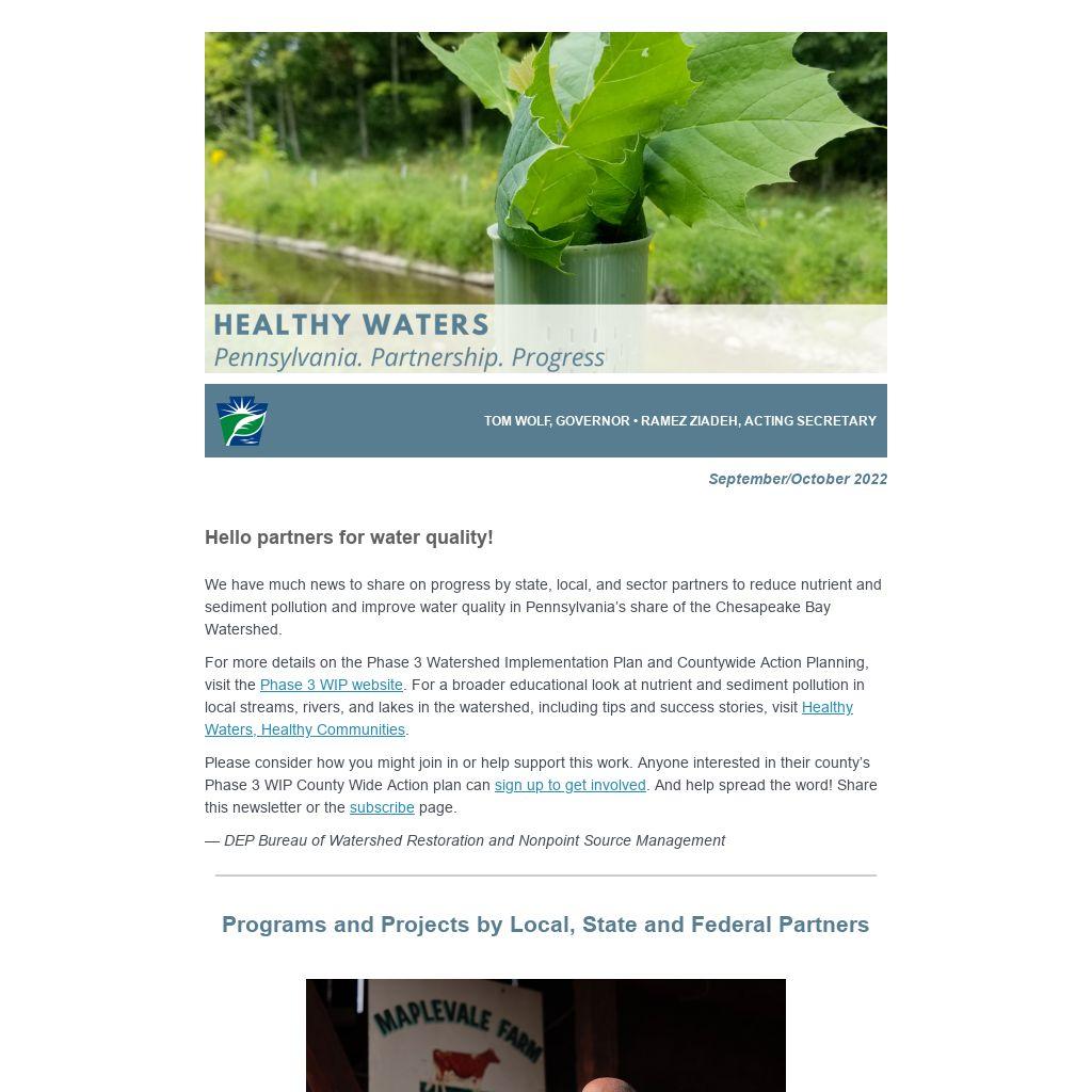 We have much news to share on progress by state, local, and sector partners to reduce nutrient and sediment pollution and improve water quality in Pennsylvania’s share of the Chesapeake Bay Watershed.